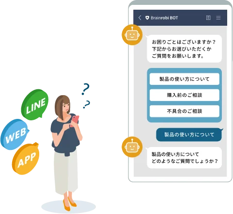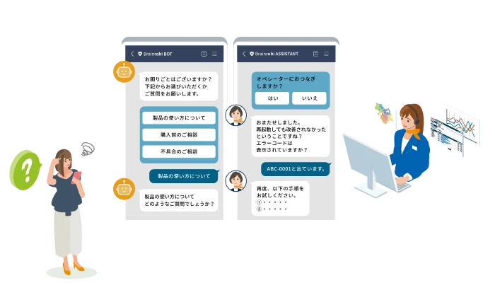 オペレーターはチャットボットの対話からお客様のニーズを事前に把握。内容を理解した上で引き継ぐことができるため、スムーズな応対とオペレーターの負担も軽減することができます。