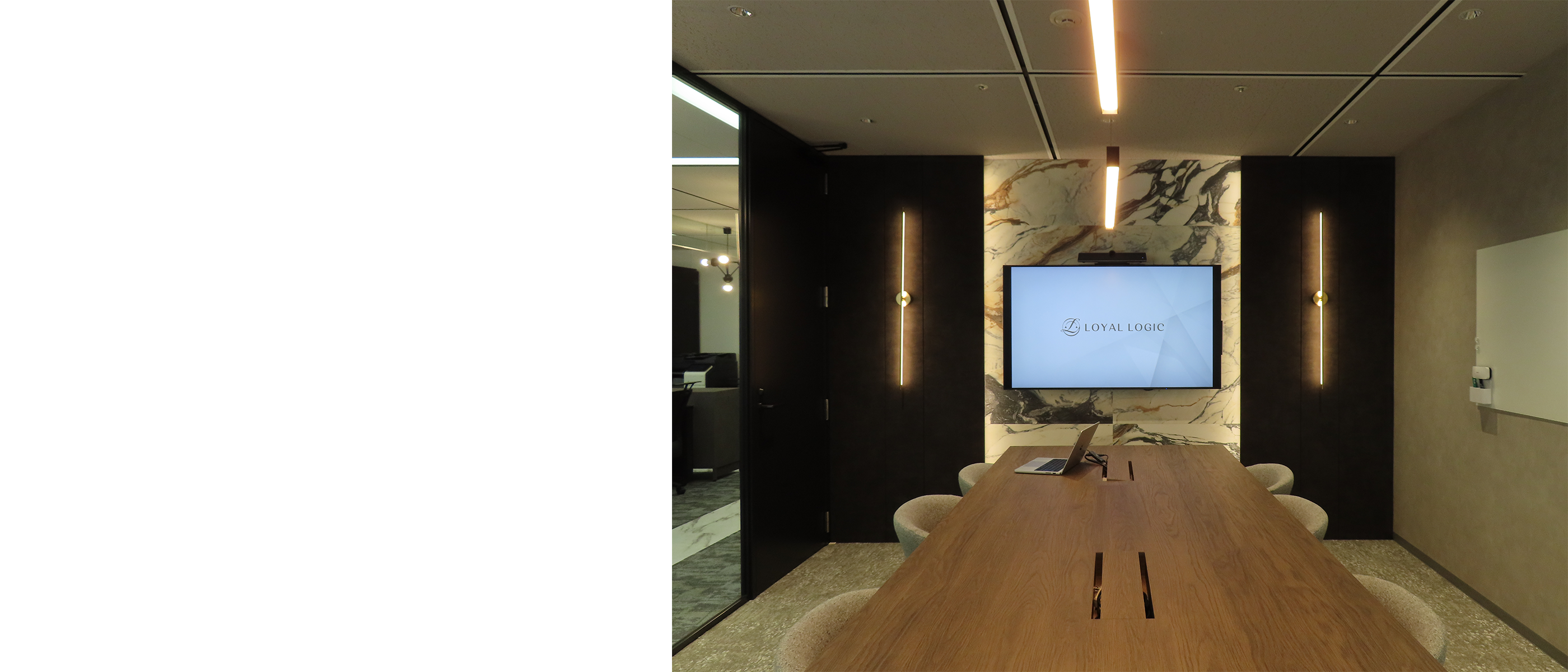 - オフィス移転を検討をする中で、デザイン性の高い会議室の雰囲気を壊さずに設置ができ、効率的で質の高いコミュニケーションを実現するようなディスプレイを導入したいと考えていました。