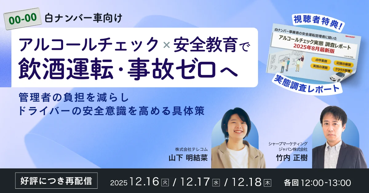 白ナンバー車向けアルコールチェック×安全教育で飲酒運転、事故ゼロへ~管理者の負担を減らし、ドライバーの安全意識を高める具体策~