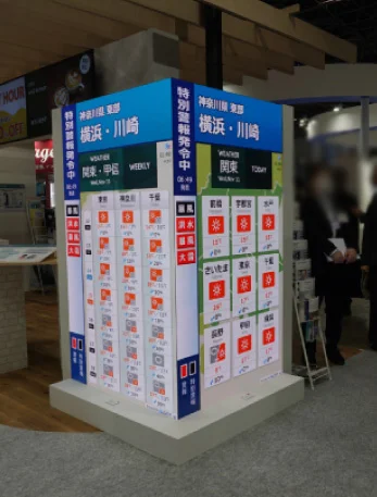といった表示機器、デジタルサイネージ配信やコンテンツ制作を支援するソフトウェアなどをシーン展示していました。