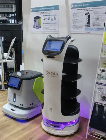 人手不足対策に配膳ロボットも検討したいが、サービスの質を下げることにならないか、自店での活用が可能なのか、悩むところです。ブースでは、配膳・下膳をロボットに任せることについて、説明員から具体的な事例を交えて説明されていました。