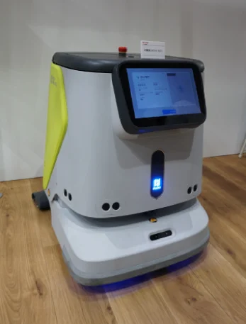清掃コスト削減と、効率の良い清掃作業の実現に、業務用の清掃ロボットのデモンストレーションをおこなっていました。スイープ、WET清掃(床洗浄)、吸引、DRY清掃(乾拭き)の1台4役をこなしてくれるそうです。