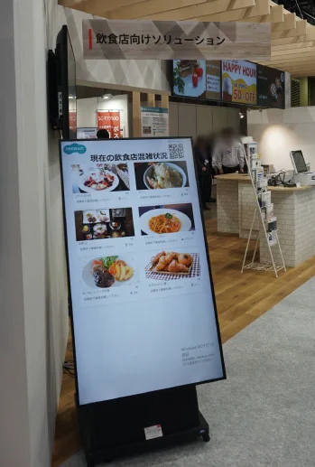 混雑状況と広告を同時に表示するサイネージも展示されていました。