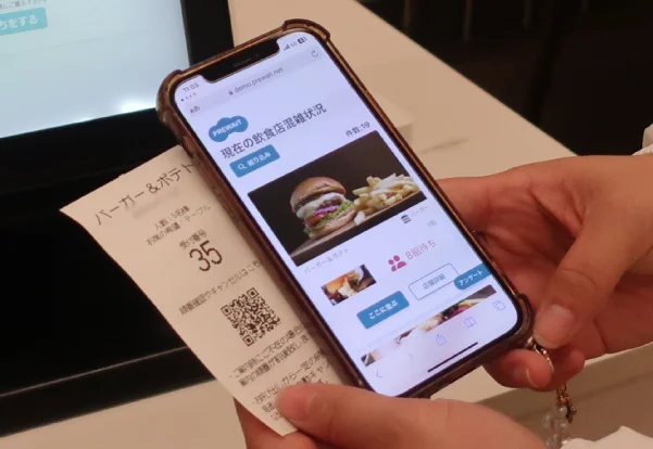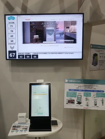 お客様が店外にいても待ち状況が確認できる順番待ちシステムを来店客として体験してみました。受付端末で混雑状況を確認し、受付ボタンを押すとQRコードが印字されたチケットがプリンターから出てきました。QRコードをスマホで読み取ると呼び出し状況が見えました。お客様の順番が近づくとメールでのお知らせも可能とのことです。