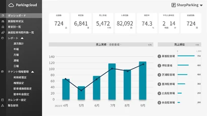 複数の駐車場の売上データを管理し、駐車場経営をダイナミックにサポート。制御下の精算機を一括管理し、精算情報など、駐車場の状況を運営会社様に見える化。