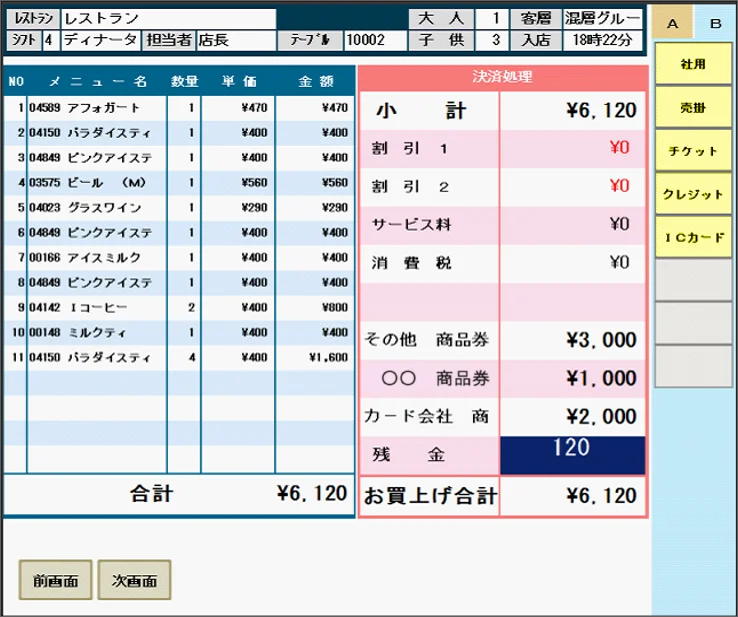 フルサービス業態から、テイクアウト業態まで設定変更により運用が可能です。