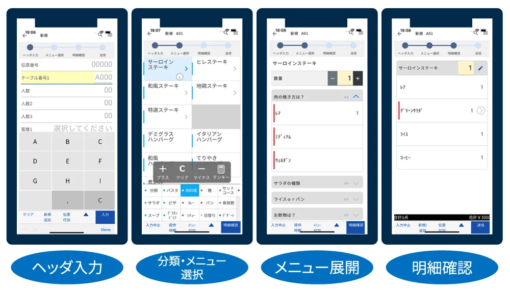レストラン/居酒屋/ホテル/フードコート/コース料理店などの各業態に1パッケージで対応可能です(簡易物販機能あり)。