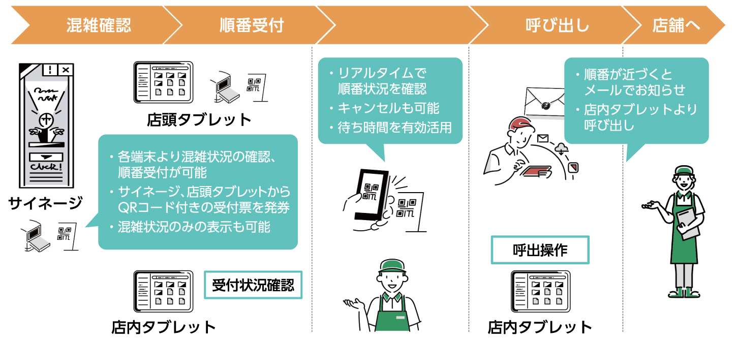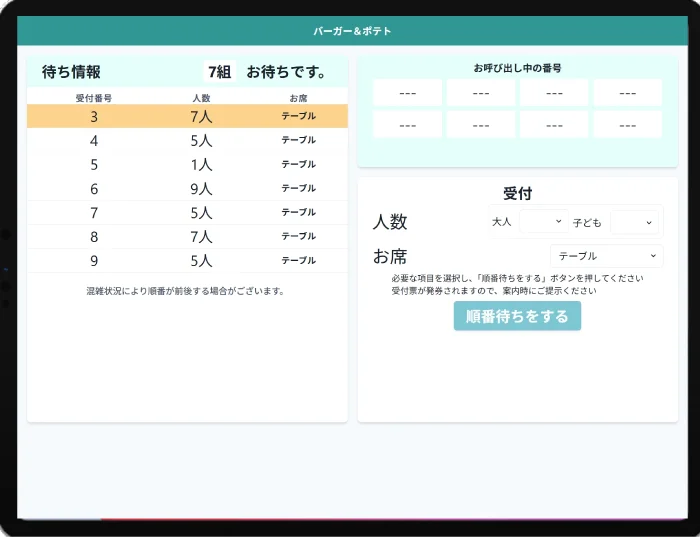 店の受付業務の自動化と、お客様にストレスのない待ち時間を提供します。