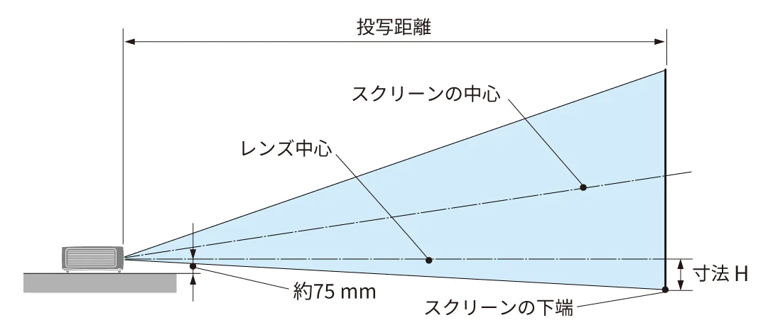 投写距離(m) | 寸法H(cm) | |