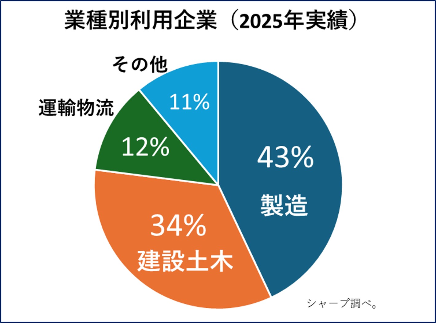 ご活用いただいた業種の内訳は、製造業が43%、建設・土木が34%、運輸・物流が12%など、暑熱環境下での「現場で手軽にできる熱中症対策」として活用いただきました。