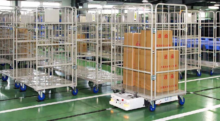 荷物を積んだ棚やパレット、カゴ車を下から持ち上げて搬送したり牽引したりする装置です。搬送する荷物の種類や倉庫内の通路幅などにより多彩な搬送装置をラインアップしています。ラインアップにないものでも別途ご相談を承ります。