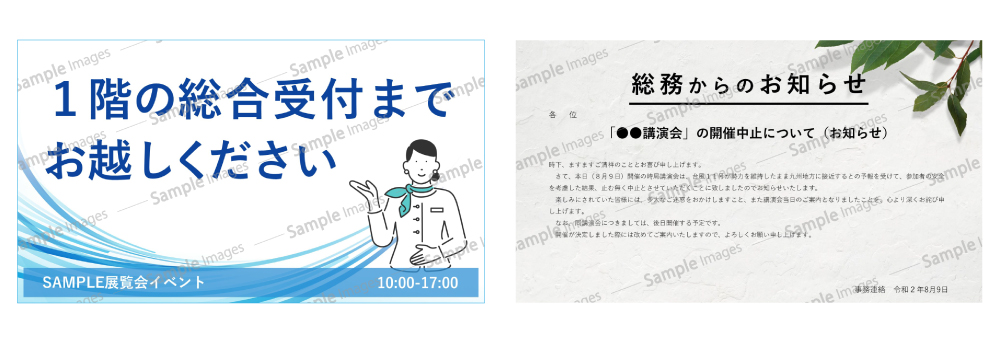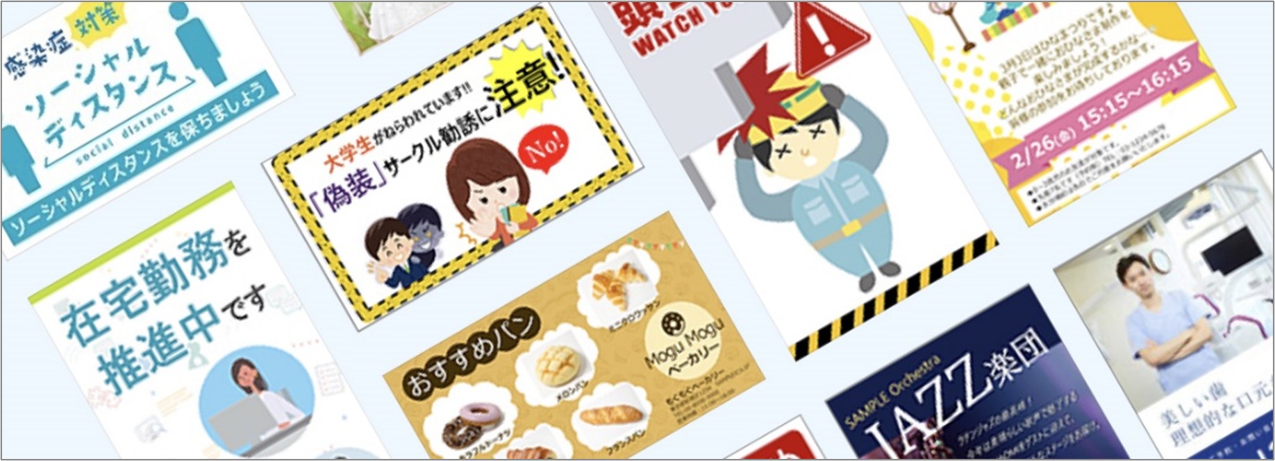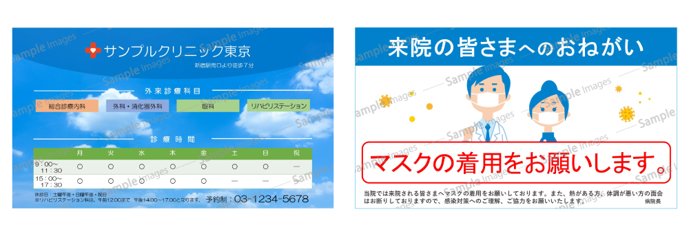 診療科目の概要や診療時間の案内、院内の感染防止対策の告知など、医療・介護の現場で便利なテンプレートを豊富に取り揃えています。
