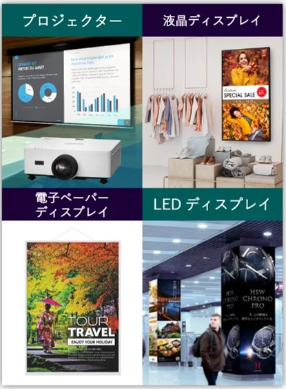 使用場所や目的に合わせて、最適なサイネージ機器を選定可能です。