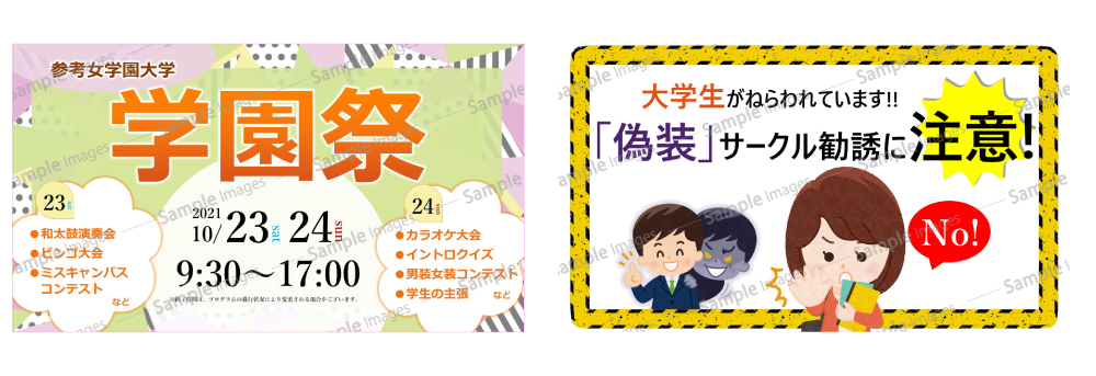学内のイベント告知や学生生活・講義スケジュールに関する情報発信など、学校と学生のコミュニケーションツールとして活用いただけるテンプレートも充実しています。