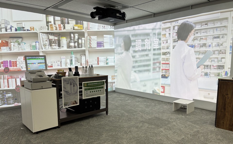 体験ゾーンの「Smart Retail」コーナーでは、プロジェクターによる空間演出で、飲食店舗や薬局の調剤室などのシーンを再現しています。こちらも合わせてご確認ください!